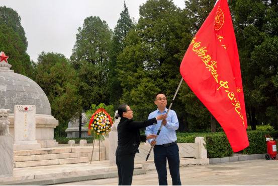 传承英烈精神,凝聚前行力量。学院以新起点开启新征程,深入学习贯彻习近平总书记关于加强党支部建设的重要指示精神,保证支部工作的传承性与连续性。在活动当天,学院举行了中共德赢vwin体育官网委员会党支部授旗仪式。赵雪霞同志为新成立的学生党支部授旗,杨玲珍同志、邓霄同志为新成立的教工党支部授旗。