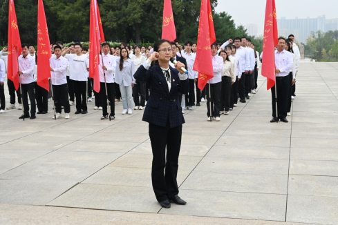 授旗仪式完毕,赵雪霞同志领誓,全体师生党员重温入党誓词。
